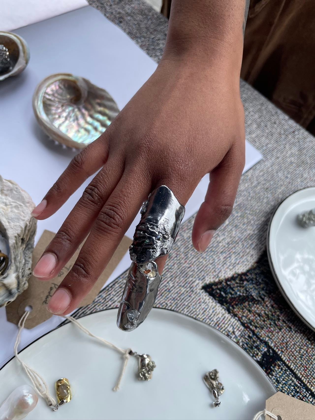 Inspired by the ancient myth of Galatea, this open ring is designed in the form of a human knuckle joint — bold, organic, and sculptural. Just as the sculptor’s creation came to life, this piece symbolizes transformation.