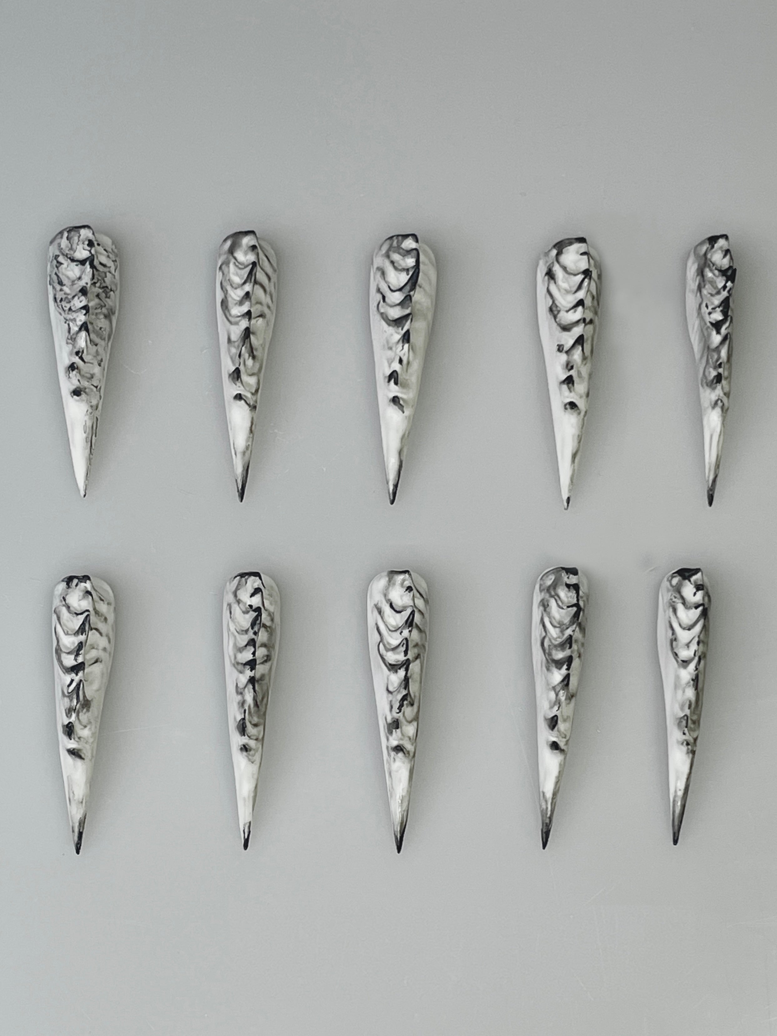 Inspired by bones and spines, the wearable nails feature black ink-dyed tips that enhance their dimensionality, creating a bold contrast to complement your various Halloween outfits. Each piece is handcrafted and one-of-a-kind.